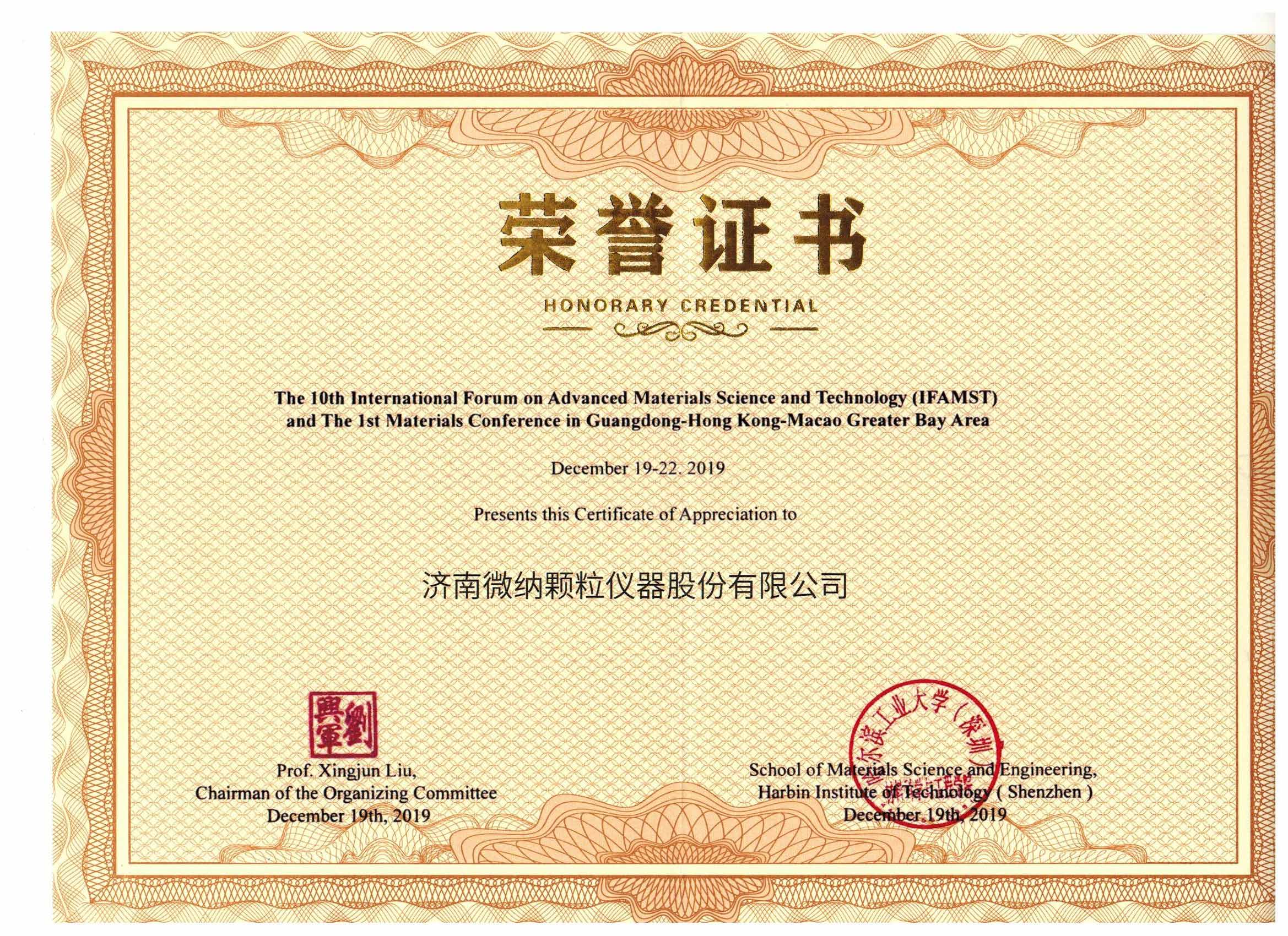 12月19日至22日,第十届先进材料科学与技术国际论坛(IFAMST)在哈尔滨工业大学(深圳)举行,来自全世界的9名院士,30名国家特聘专家,33国家杰青及优青,11名长江学者,以及各领域领军人物116余人参加了本次会议,以先进材料和技术为主题,共同探讨了先进材料和技术的zui新研究进展及趋势。济南微纳颗粒仪器股份有限公司作为国内激光粒度仪行业老牌制造商,受邀参加了本次会议。